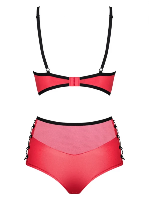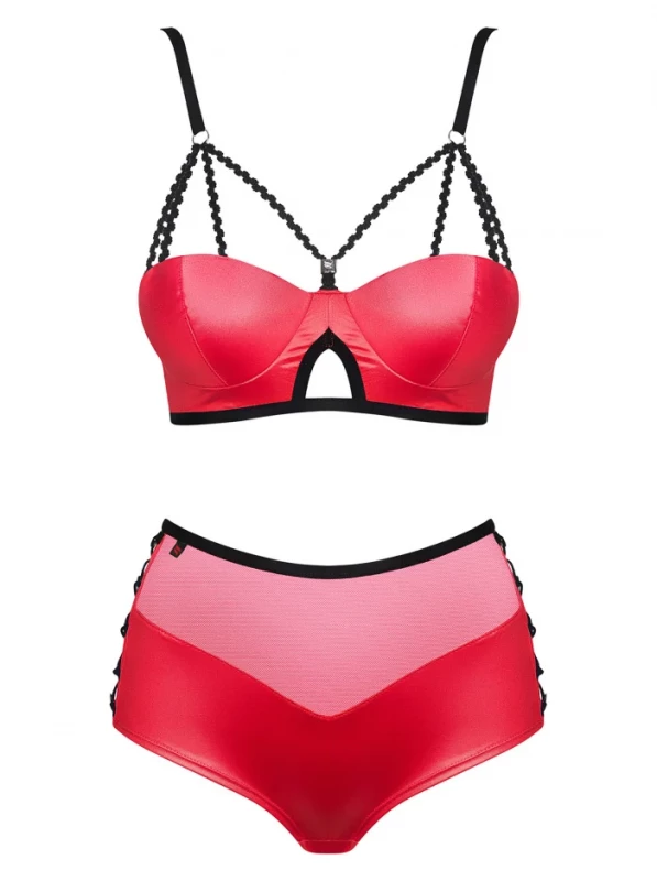 Комплект "Obsessive Leatheria" лиф-бра и высокие трусики, красный, S/M